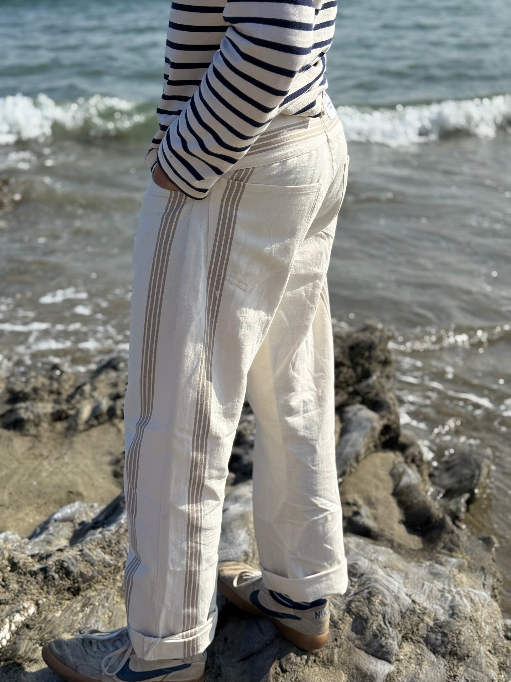 The iconic grey St Mawes Jeans are a true wardrobe essential, designed with versatility at their core. These Jeans fit a unisex mid-rise that sits comfortably at the hips and a timeless straight-leg silhouette, they feature adjustable waistband tabs for a customisable fit, allowing you to size down when needed. Inspired by the ease of coastal living and the rhythm of the city, they strike the perfect balance between laid-back comfort and refined everyday style.